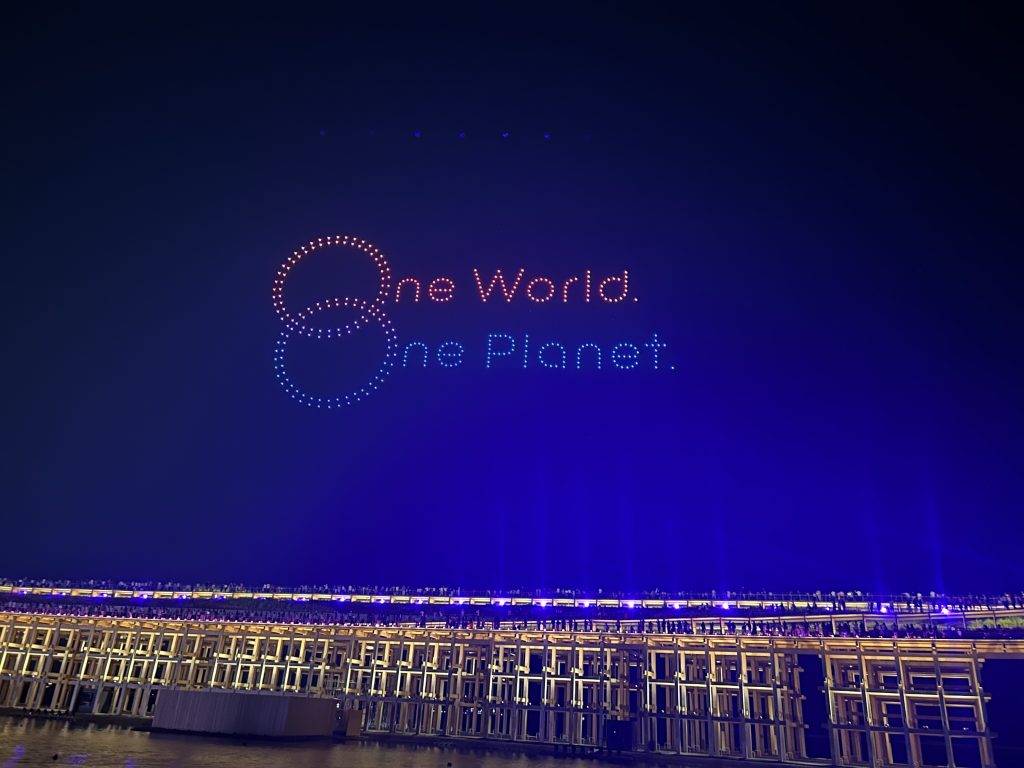 先日、有志メンバーで万博を見学しました。印象に残ったのは、多数のドローンが夜空に描く「One World. One Planet.」の文字です。水辺の上に静かに浮かぶ光の動きが印象的で、演出や安全面の工夫に思わず見入ってしまいました。